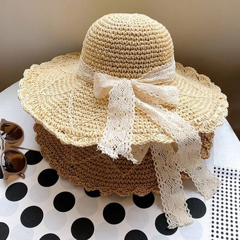 Nuevo conjunto de sombrero de paja de estilo vacacional, de moda y portátil, con decoraciones inspiradas en la playa que son vivas y fluidas, adecuadas para todos los días